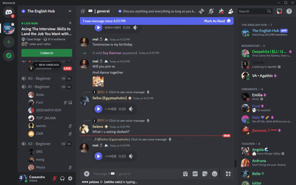 What sets this server apart is the access to real, qualified teachers. The classes are interactive and well-structured, but there’s also plenty of opportunity to just practice speaking and get feedback. Perfect mix of formal and casual learning.